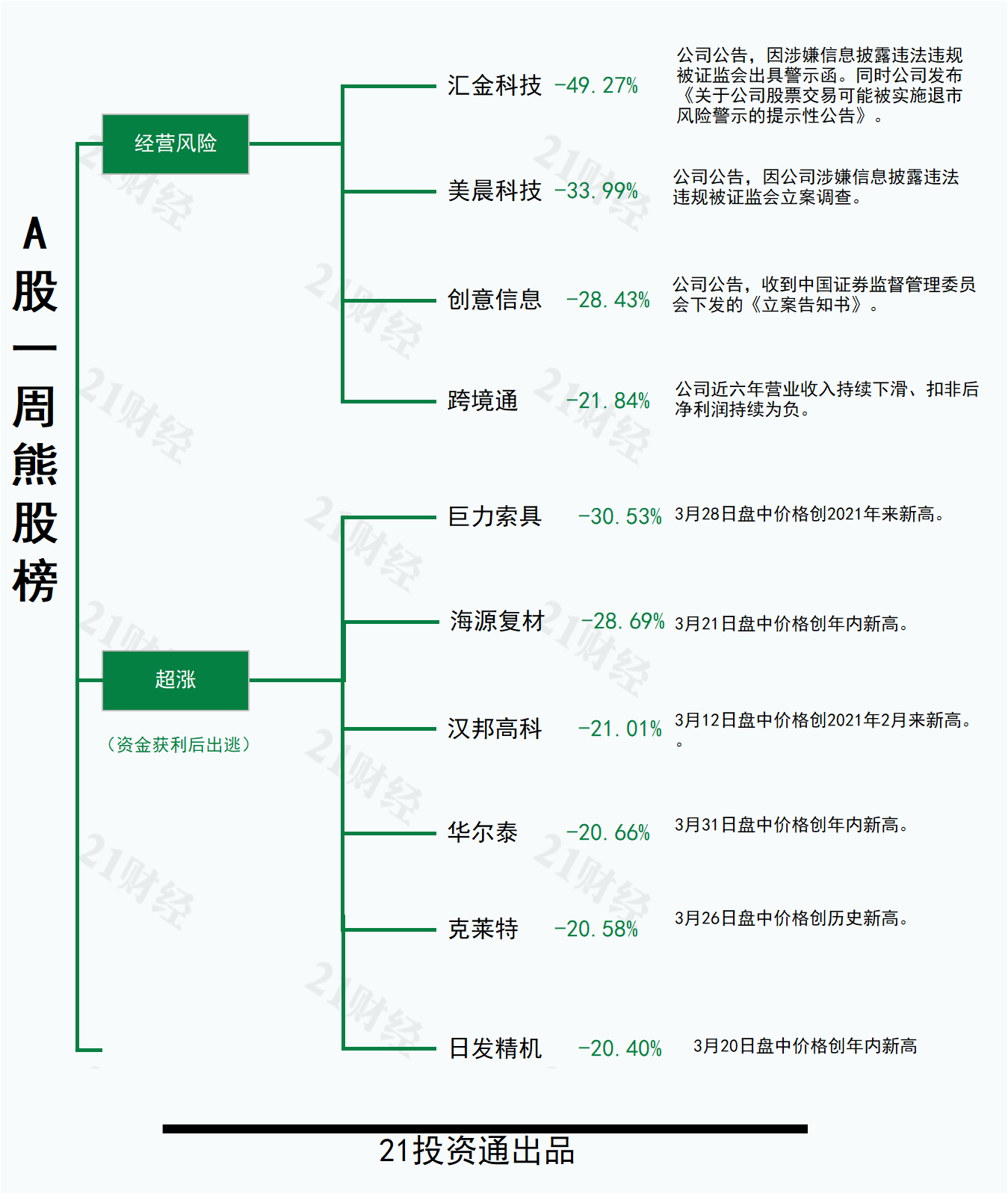 哪些个股领涨?哪些个股领跌?21投资通每周持续为你透视。