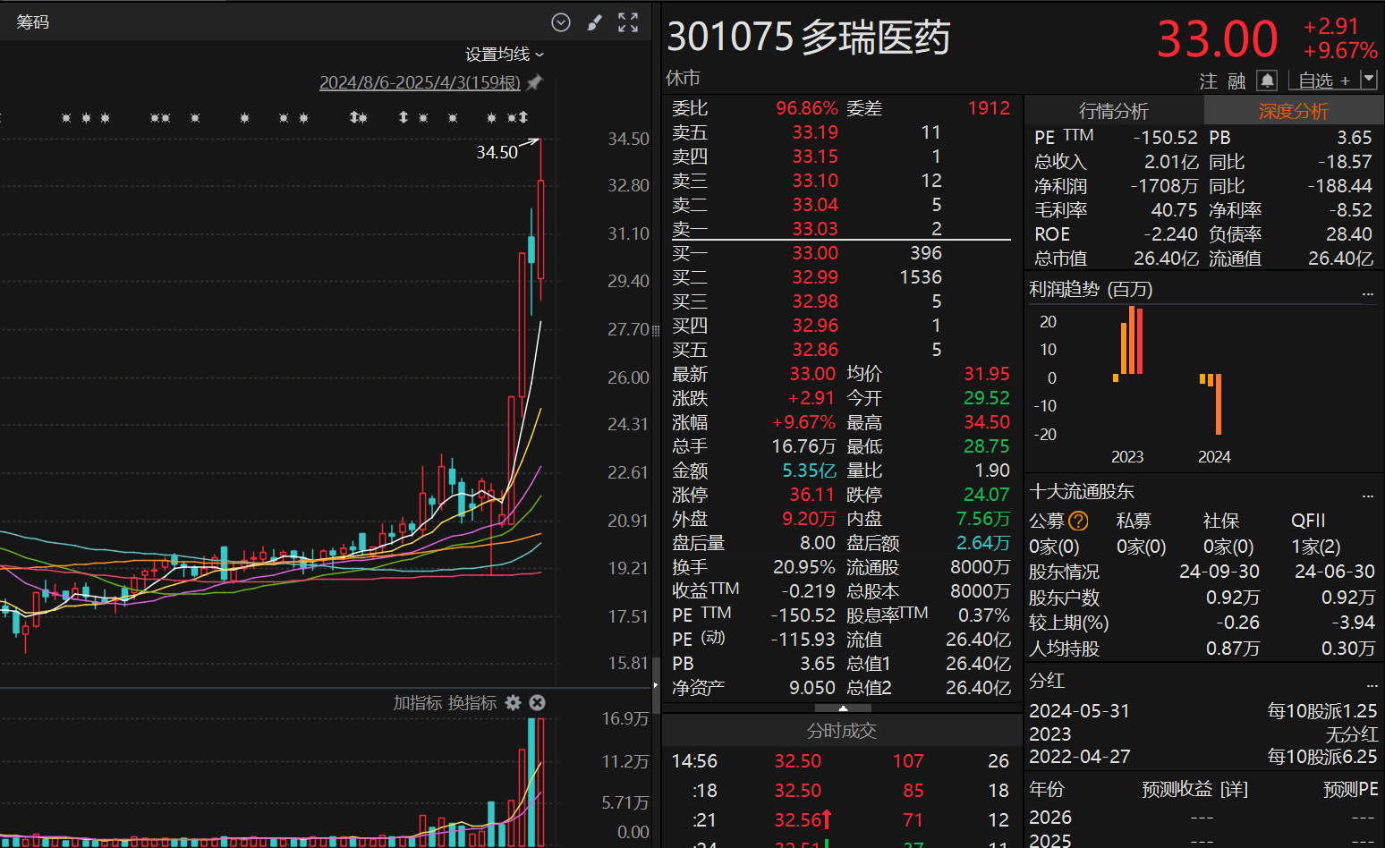 医药板块全线爆发,最牛股多瑞医药实现“2连板”